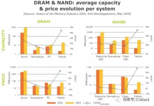 DRAM和NAND:每种应用系统的平均存储能力和价格演进
