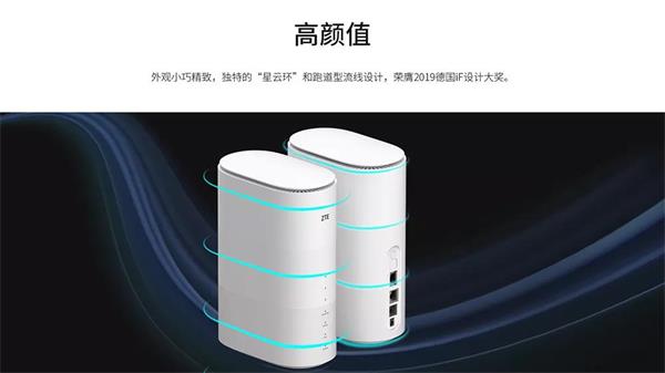 为了确保中兴5G室内路由器 MC801在高荷载下保持高速稳定的运转,中兴双管齐下,一方面通过TWT技术大幅提升功耗效率,另一方面采用了先进的散热技术,以高导材质散热片配合空气动力学流线散热设计解决5G网络下大功率发热的问题。而凭借其独特的“星云环”设计,跑道型流线设计中兴5G室内路由器 MC801荣获2019德国iF设计大奖。同时,中兴5G室内路由器 MC801也是业界商用尺寸最小的5G路由器产品。