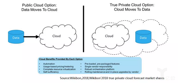 首先来看一个云的基本判断——Wikibon在最新的几次云计算报告中都强调了“面对传统企业级客户的下一步云化,最终主导模式是将云移动到数据上,而非将海量数据移动到中心云上”的判断,这是真正私有云市场崛起、发展和超越的基础。无独有偶,IBM以340亿美元收购Redhat之后,也提到“将云和AI移动到数据上”的类似论断。的确,“将云移动到数据上”打消了行业企业客户“将数据迁移到中心云上”所产生的数据安全、应用延迟、迁移成本、复杂环境、监管合规、知识产权等诸多疑虑,是真正以客户为核心的数字化转型模型。