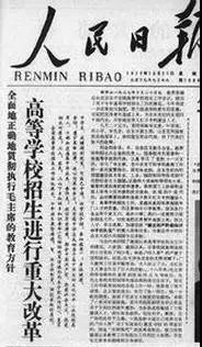 1977年10月,《人民日报》头版头条发表《高等学校招生进行重大改革》,宣布恢复高考,全国上下一片欢腾。