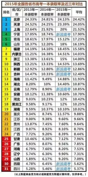 对于人口大省河南、广东、四川来说,录取率仅有个位数。而同样作为人口大省,山东的排名有点令人惊喜。你觉今年那个省的考生录取率最低?
