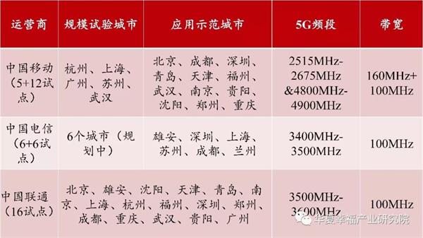 图 | 三大运营商5G试点城市以及5G试验频率分配方案