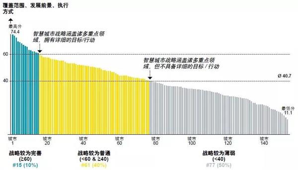 153个智慧城市发展战略中,只有15个城市得分达到或高于60分