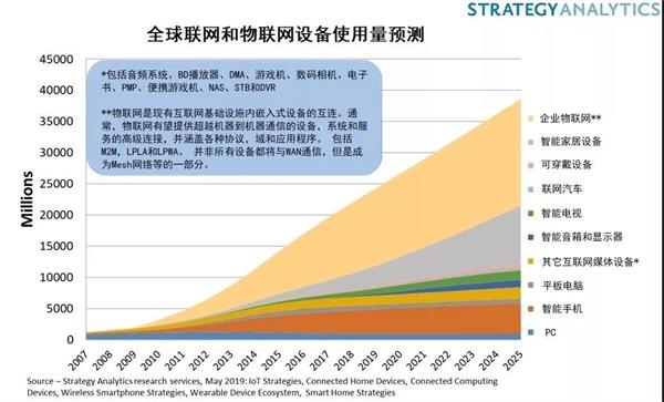 信息科技发展开始转向物联网,面对新一轮信息科技所蕴含的巨大机遇,越来越多的企业积极探索或者加大部署物联网,Strategy Analytics调查报告显示,截至2018年末,全球联网设备数量达220亿台,企业物联网占据一半以上市场份额。