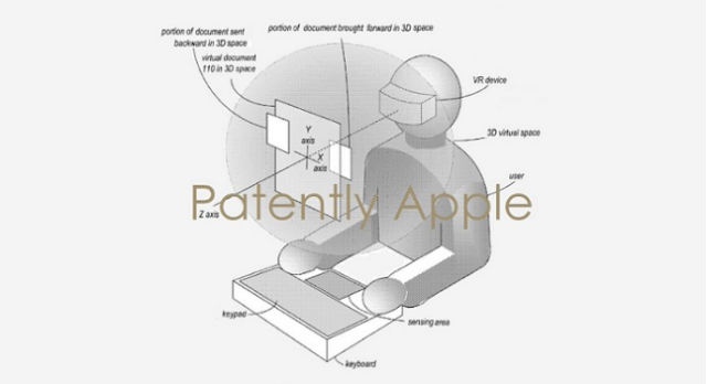近日,据外媒报道,美国专利商标局公布了一项关于苹果的专利申请,其涉及一种可用于将虚拟按键标签叠加到物理键盘上的触摸屏显示器。简单来说,屏幕上只会显示“虚拟文档”或屏幕保护程序的图像,而AR设备佩戴者则可以在同一位置看到实际文档的增强图像。
