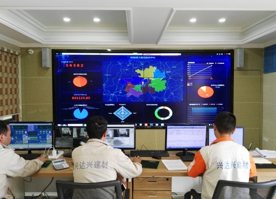 走进兴达兴集成控制中心,设备运行、原料配给、生产排程、运输规划、消耗统计、质量控制,所有生产运行情况在大屏上一目了然。