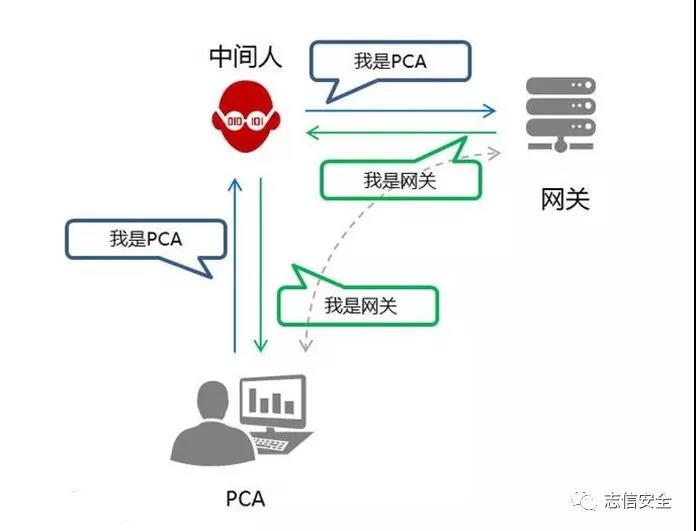 但ARP缓存表机制存在一个缺陷,当PCA收到中间人应答包后,不会去验证自己是否向中间人发送过ARP请求包,就直接把这个返回包中的IP地址与MAC地址的对应关系保存进ARP缓存表中,如果原有相同IP对应关系,原有的则会被替换。