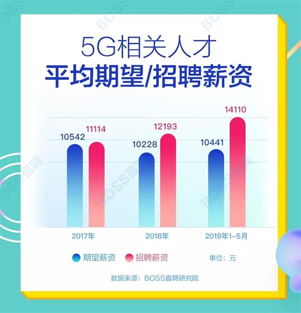 5G商用的步伐越来越近,与之相关的人才需求也跟着快速上涨。BOSS直聘的数据显示,5G相关人才平均招聘薪资为14110元,已经连续三年过万,远高于此前统计的芯片产业的平均薪资。
