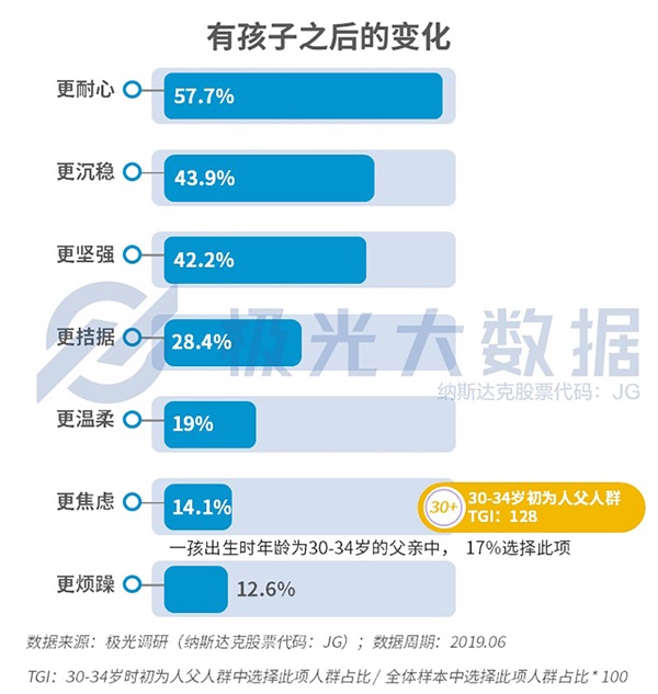●超半数父亲表示有孩子后更耐心,超四成表示变得更沉稳