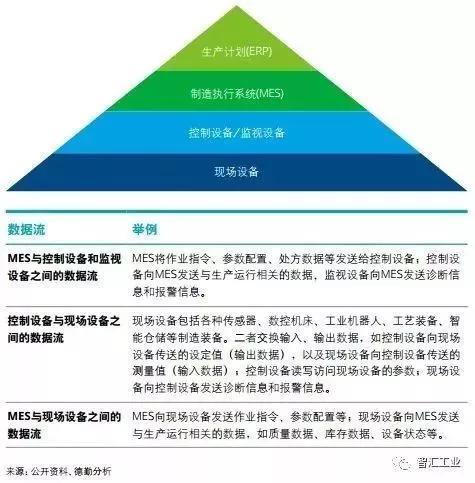 德勤调研结果显示,目前企业致力于打通从ERP到MES乃至现场设备的数据流,但这也仅是从生产到执行的打通,未来 还需将产品数据、供应链数据串联。我们将生产数据流分为两个环节:一、打通生产计划与执行系统的数据流;二、执行与监控和现场设备的数据流。