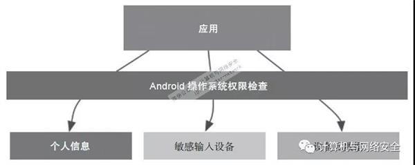 在安卓系统上,在接触任何系统资源前,应用都要通过权限检查,如图2所示。