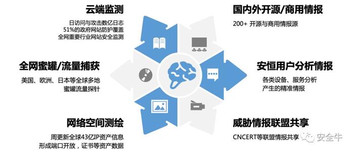 威胁情报能力的基础,是威胁情报的收集。安恒的威胁情报从何而来?主要包含以下几个渠道: