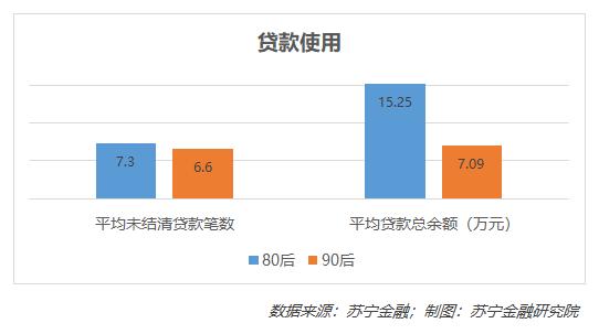 不过,两个群体的未结清贷款笔数接近,说明90后使用小额借贷产品更多。