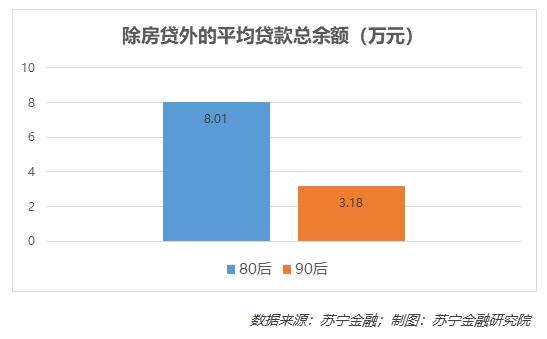 在剔除了房贷余额之后,80后、90后的平均贷款总余额差距不仅没有变小,反而更大了,从2.15倍增加到2.51倍。