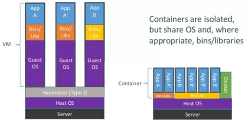 图3:容器技术 vs.hypervisor虚拟化技术(来源:Docker)