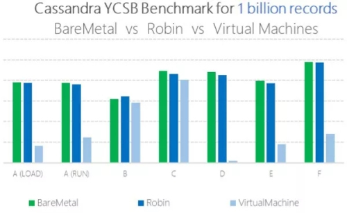 12、可以和裸机媲美的性能。下面是Enterprise Strategy Group提供的第三方基准测试的结果,这个测试对一个多节点Cassandra数据库运行了7种不同的Yahoo Cloud Serving Benchmark (YCSB)测试:
