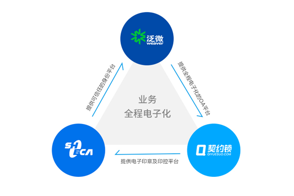 ▍泛微、上海CA和契约锁的组合,为组织全程电子化办公带来了可行落地方案: