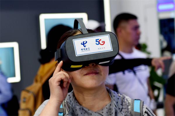 (2019 年 6 月 9 日,游客在北京世园会的 5G 展区体验 VR 设备 | 视觉中国)