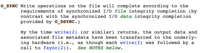 那么要怎么做呢?很多人会想到很多办法,比如:fflush()、fsync()、fdatasync()、sync()、open()使用O_DIRECT或O_SYNC标志等。嗯,这些手段(或者某些组合)的确可以保证数据安全的持久化,那么它们之间有什么区别呢?fflush()和fsync()有啥区别?O_DIRECT是啥意思,它可以保证数据安全的持久化吗?O_DIRECT和O_SYNC区别什么?O_SYNC和fsync()呢?fsync能完成msync的功能吗?本文将试图理解、解释这些概念的作用和区别。