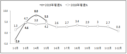 图4 2019年1-5月软件业从业人员工资总额增长情况
