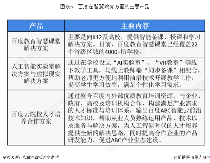 2019年2月,百度教育在教育合作伙伴大会上,正式发布了“AI+教育”四大产品:百度教育智慧课堂解决方案、人工智能教育解决方案、VR教育产品与面向高校的人才培养合作方案。目前百度的教育会员已经超过1000万,产品覆盖全国32省份。