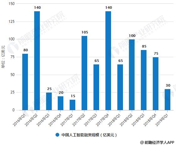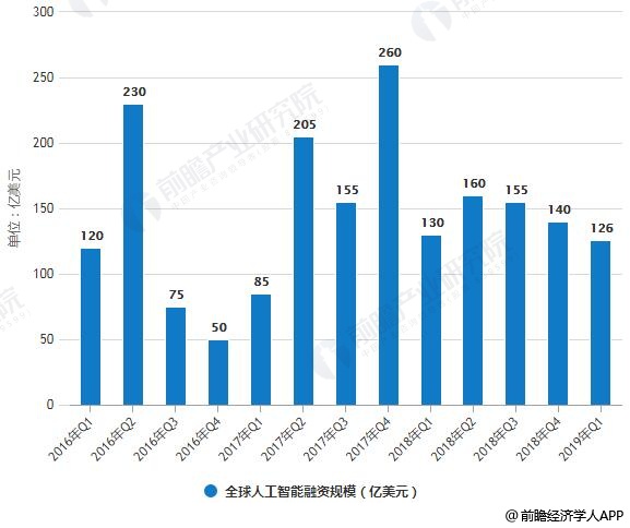 2016-2019年Q1全球人工智能融资规模统计情况