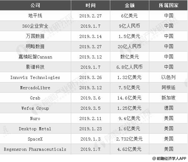 从具体企业来看,2019年第一季度,全球单笔融资金额超过1亿美元的交易共16笔。其中中国企业获投6笔,美国企业获投4笔,以色列、新加坡、德国和阿根廷企业各获投1笔。中国企业不管是数量还是所融资金的数量,均为第一。