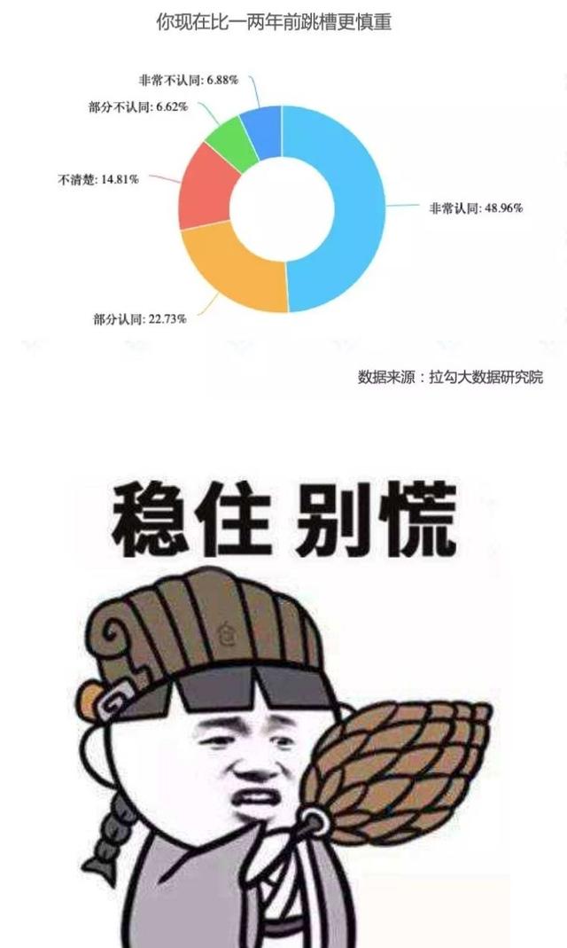 据《白皮书》有关数据显示,近84%的互联网人对就业环境“非常担心”。70%左右的求职者在今年跳槽时更加谨慎,而这种担忧是跨年龄的。随着企业对组织优化,初级人才找工作的难度加倍,没有多少积累的年轻人会更倾向于抱住饭碗;而年资较高群体的各方面生活负担加剧,工作年限越高的人也就越要考虑要承担家庭等多种元素的责任,力求稳字当前便成为几乎所有人的共同选择。由于几乎所有区段的人才都有担心和焦虑,结果就是整个职场的人才流动性变差,这也对企业招聘提出了更高的要求。人人都有自己的烦恼,有个稳定工作是很关键的!