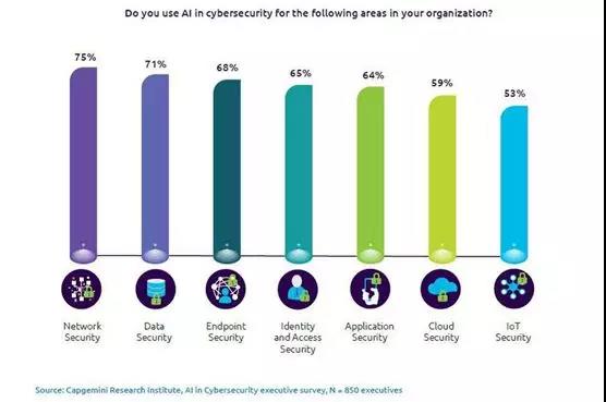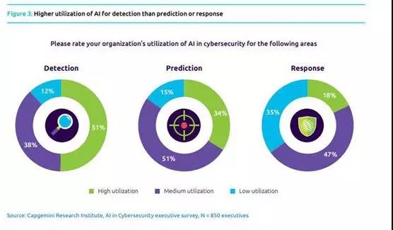 51%的高管正在为网络威胁检测、超出预测和大幅回应做出广泛适用的AI。企业高管正在将预算和时间集中在使用AI进行预测和响应的网络威胁上。随着企业在使用人工智能作为其网络安全工作的一部分方面成熟,预测和响应将相应增加。