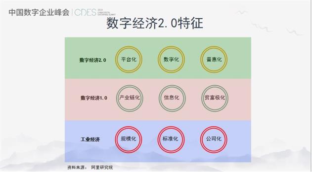 因为这十年的时间正好是一个非常重要的节点,十年时间我们已经踏入到了数字经济2.0的时代,我们发现以前的工业经济讲规模、讲全球运营;而后来的数字经济1.0时代,在前面的基础上大家讲产业链,许多企业领导人们都提出了全球范围内的产业链整合;但是到了今天,数字经济已经跨过了产业链阶段,现在我们讲的是平台化、数字化、普惠化,这也是数字经济2.0时代的三大特征和主要发展趋势。