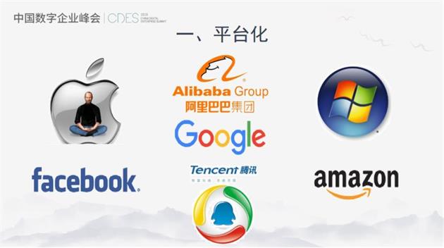 平台化:这页PPT中的企业都是当前风头正劲的平台性公司,今天我们整个经济正在从传统的跨国企业、连锁企业、产业链整合进入到平台经济阶段。未来20年,在全球范围内可成为真正的平台型企业的也不会超过20家。那么今后我们每一个公司,无论是否认可,都需要学习如何和这些平台型公司打交道,因为每一家平台性公司的手上都有着超过10亿规模的互联网人口。