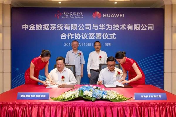 2019年7月15日,中金数据系统有限公司与华为技术有限公司在深圳举行了签约仪式,中金数据副总裁兼中金花桥总经理杨雨与华为EBG中国区企业综合拓展部总经理邓铭作为代表签署了合作协议。中金数据董事长兼总裁杨洁、华为副总裁&华为云业务总裁Cloud BU总裁郑叶来、中金数据副总裁凌明洁、华为网络能源副总裁何波、中金数据副总裁王绪生、中金数据副总裁兼中金花桥副总经理王薇薇等出席了本次签约仪式。