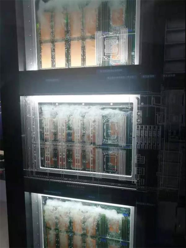 平稳运行中的曙光“全浸没液冷”服务器群(局部)