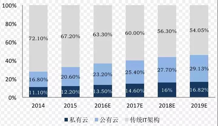 还有一点需要注意,并不是所有的企业应用都适合迁移到公共的云平台之上,从实际来看很多企业出于业务属性的考虑选择的是私有云,这些私有云平台一般是直接部署在用户自己的数据中心或者部署到托管的数据中心中。从近几年的数据来看私有云市场在增长率上不如公有云,但私有云的市场的基数大,导致目前私有云市场的收入目前还是高于公有云的,比如根据451 Research 2018年的调查,2018年私有云市场的营收比公有云市场的营收要高出43%。