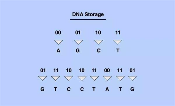 我们的信息技术基础设施基于以比特(包括两个数字:0和1)来存储信息,而DNA信息存储在四个潜在碱基单位的串中。为了将非遗传信息存储在DNA中,我们必须先将二进制数据从比特转换成DNA数据的四单位(AGCT)结构。