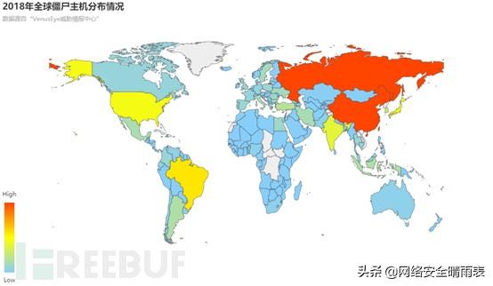 2018年全年捕获到的各类受僵尸网络控制的主机中,中国数量最多,受害最严重。我国境内僵尸主机分布最多的五个地区分别为山东、河南、江苏、广东和浙江。控制我国僵尸主机最多的五个国家分别为美国、英国、法国、荷兰和日本。