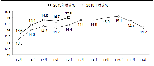 图4 2019年上半年软件业从业人员工资总额增长情况