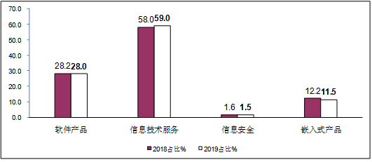 信息技术服务收入较快增长,电子商务平台技术服务、大数据服务等增势突出。上半年,信息技术服务实现收入19386亿元,同比增长17.2%,增速同比提高0.1个百分点,较一季度回升0.5个百分点,高于全行业平均增长水平2.2个百分点,在全行业收入中占比为59%。其中,云服务和大数据服务收入分别增长14.6%和20.5%,较一季度回落0.8个和0.2个百分点,在信息技术服务收入中总占比为9%;电子商务平台技术服务收入增长22.6%,同比提高7.6个百分点;集成电路设计服务收入增长12.1%,扭转去年同期下降2.2%的局面,较一季度提高3.2个百分点;其他信息技术服务(信息技术咨询设计服务、系统集成、运维服务、运营服务等)增长16.3%,较一季度提高1.2个百分点。