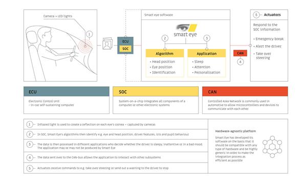 「Seeing Machines 在开发 DMS 产品时,结合了在『睡眠研究』以及『人类因素研究』上的成果,这使其具备了比其他对手更强的竞争力。」Barnden 解释道,「而 Smart Eye,提供的是基于摄像头的 DMS 解决方案,加上其在人工智能领域的积累,可以对驾驶员的心理认知、参与度以及情绪状态进行更好的分析解读。」