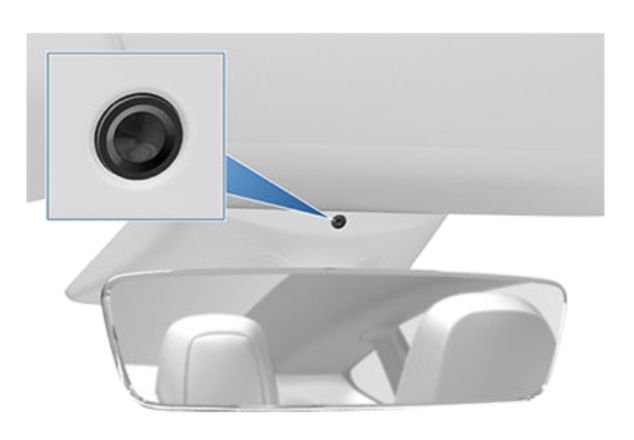 位于特斯拉 Model 3 驾驶室内的一枚摄像头,处于尚未激活的状态 | 官方截图