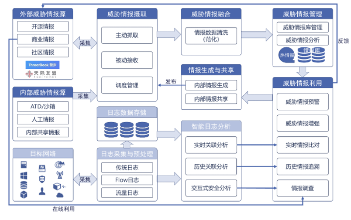 威胁情报应用功能的核心将外部的威胁情报与用户自身网络中收集到的告警信息进行情报比对分析和印证。