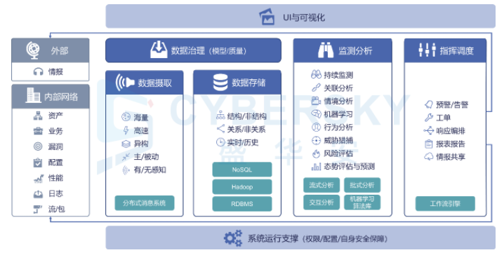 Cybersky-SOAR 较为完整地实现了 Gartner 对 SOAR 定义的核心能力,因而是真正意义上的 SOAR 产品,填补了国内产品空白。同时,盛华安 Cybersky-SOAR 的发布,也践行了公司成立之初提出的集数据摄取、数据存储、数据治理、监测分析、指挥调度与一体的闭环态势感知与管理技术架构的理念。