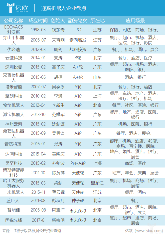 在此背景下,亿欧分析了21家生产迎宾机器人的企业,希望对迎宾机器人有进一步的了解。
