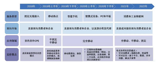 正式商用后将重点基于智能手机推出移动服务产品,此时的定价模式将更聚焦于数据、服务或订阅内容上。后期则更倾向面向物联网市场发展5G业务,定价模式也因此更加灵活和开放。