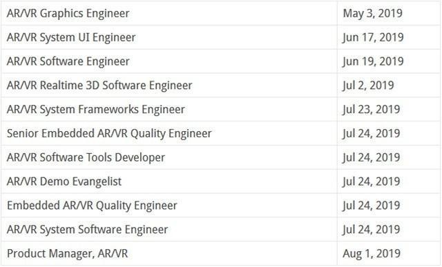 事实上,近期VR产品开发遇阻的消息不少,比如苹果一个月前也曾传出停止了开发AR/VR眼镜的项目。但随后又有消息称,苹果雇佣了增强现实领域的新人才,还曝光了混合现实耳机新专利,可追踪完整面部表情。近几天曝光的AR/VR职位招聘信息表明,它可能会有进一步的AR/VR开发项目——人们有理由认为,苹果也打算打造一款引人注目的设备进入该市场。
