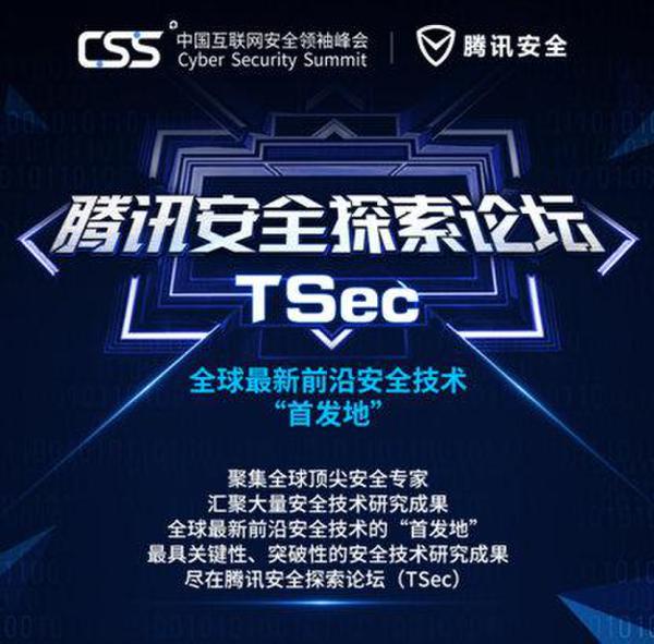 腾讯本着在国内打造一个具有同样行业影响力的世界顶级安全技术大会的愿景,将于今年8月16日在第三届中国互联网安全领袖峰会(Cyber Security Summit 2017,简称CSS2017)上设立腾讯安全探索论坛(TSec),它是腾讯安全打造的一个全球前沿、尖端安全技术的首发平台,让你不出国门尽览全球信息安全领域前沿技术,把握未来趋势。