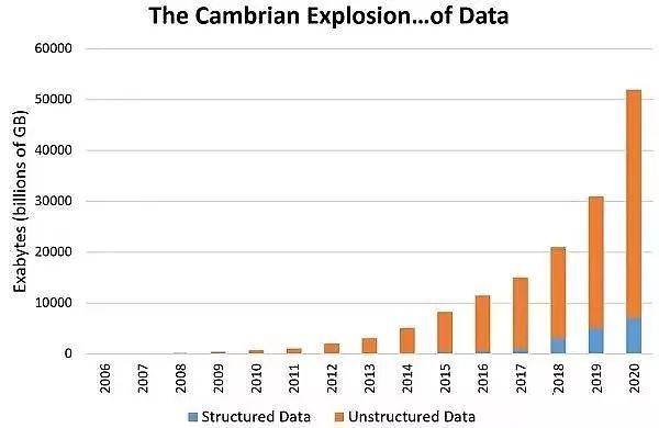 随着数字化、网络化的发展,越来越多的公司构建在以数字组成的产品服务之上,苹果、亚马逊和微软等公司已经超越以物质为主进行建设的传统公司。数字化、网络化的建设过程中,公司和个人正在产生越来越多的数据。据统计,从2010年到2020年,世界每年创造的数据在以42%的复合增长率增长;到2020年将达到每年44ZB的数据量。
