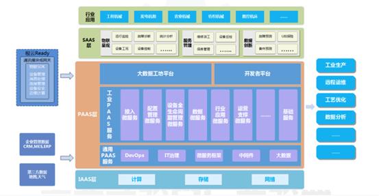 再比如三一重工打造的树根互联 Root Cloud 根云平台,主要基于三一重工在装备制造及远程运维领域的经验,由 OT 层向 IT 层延伸构建,通过智能物联和 SaaS 解决方案,提供面向设备健康管理、远程维护等服务。