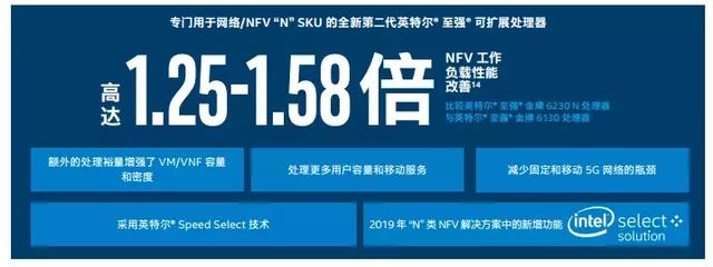 英特尔®至强®可扩展平台提供的架构能够轻松扩展和改造,第二代英特尔®至强®可扩展处理器“N”SKU,专门用于网络/NFV,开源数据平面开发套件(DPDK)在英特尔架构上实现了优化的通信操作。