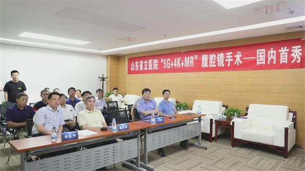8月14日下午,山东省立医院开展了“5G+4K+MR”腹腔镜手术国内首秀。此次首秀是由山东省立医院副院长李乐平教授带领团队联合海信医疗、奥林巴斯及中国移动成功调试并实现5G环境下的4K超高清与混合现实技术(MR)结合的腹腔镜手术直播,山东省立医院党委书记赵升田、山东省立医院副院长孙志坚亲临山东省立医院中心院区妇儿楼会议室并进行指导,来自全省近20名专家进行了观摩学习。